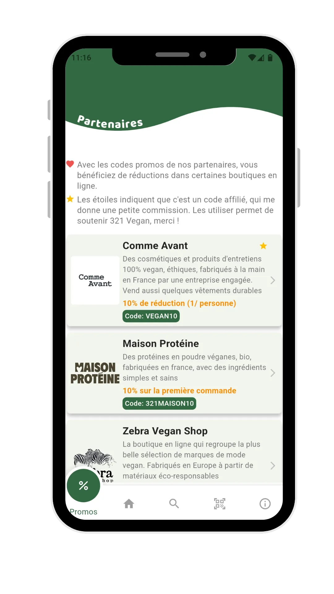 L'appli 321 Vegan vous aide à trouver des produits véganes lors de vos courses. Scannez le code-barres d'un produit pour savoir s'il est végane ou non, même sans connexion internet.